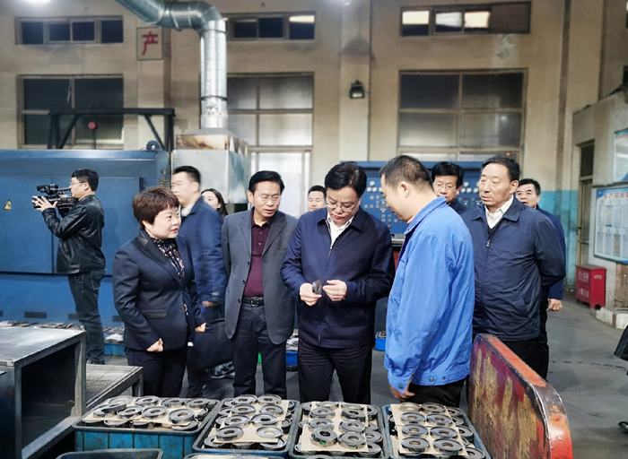 省機械院黨委書記、院長王云平、華夏公司總經(jīng)理左鵬軍、副總經(jīng)理楊聰斌等帶領(lǐng)調(diào)研組一行參觀了公司壓制成型車間、燒結(jié)生產(chǎn)車間及精加工車間,并就公司生產(chǎn)經(jīng)營、市場開拓、新品研發(fā)、技改環(huán)保等方面情況進行了匯報。汪文展主席詳細詢問了公司粉末冶金生產(chǎn)流程、新技術(shù)新產(chǎn)品研發(fā)、市場配套客戶及三季度生產(chǎn)經(jīng)營運行情況。汪文展主席強調(diào),華夏公司要緊抓產(chǎn)品研發(fā)技術(shù)前端優(yōu)勢,克服疫情及外部環(huán)境影響,緊抓當前市場發(fā)展機遇,四季度力爭產(chǎn)業(yè)經(jīng)濟發(fā)展再上新臺階。調(diào)研快結(jié)束時,汪主席細致詢問公司在后續(xù)發(fā)展上存在那些問題或困難需要解決。院長王云平表示,華夏公司目前正處于發(fā)展爬坡期,公司將在設(shè)備技改提升及新品研發(fā)上下大功夫,希望市、區(qū)工業(yè)及科技部門在政策扶持和項目資金上能給予公司發(fā)展助力。汪主席表示,市區(qū)各部門將會大力扶持華夏公司粉末冶金產(chǎn)業(yè)發(fā)展,持續(xù)為企業(yè)發(fā)展保駕護航。